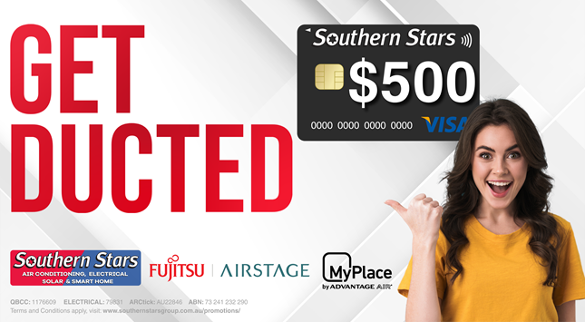 - Install a new Fujitsu or Daikin Ducted Air Conditioning system with a MyPlace Smart Control system from the approved model list (below) within the above-mentioned date range by Southern Stars Air Conditioning and Electrical.